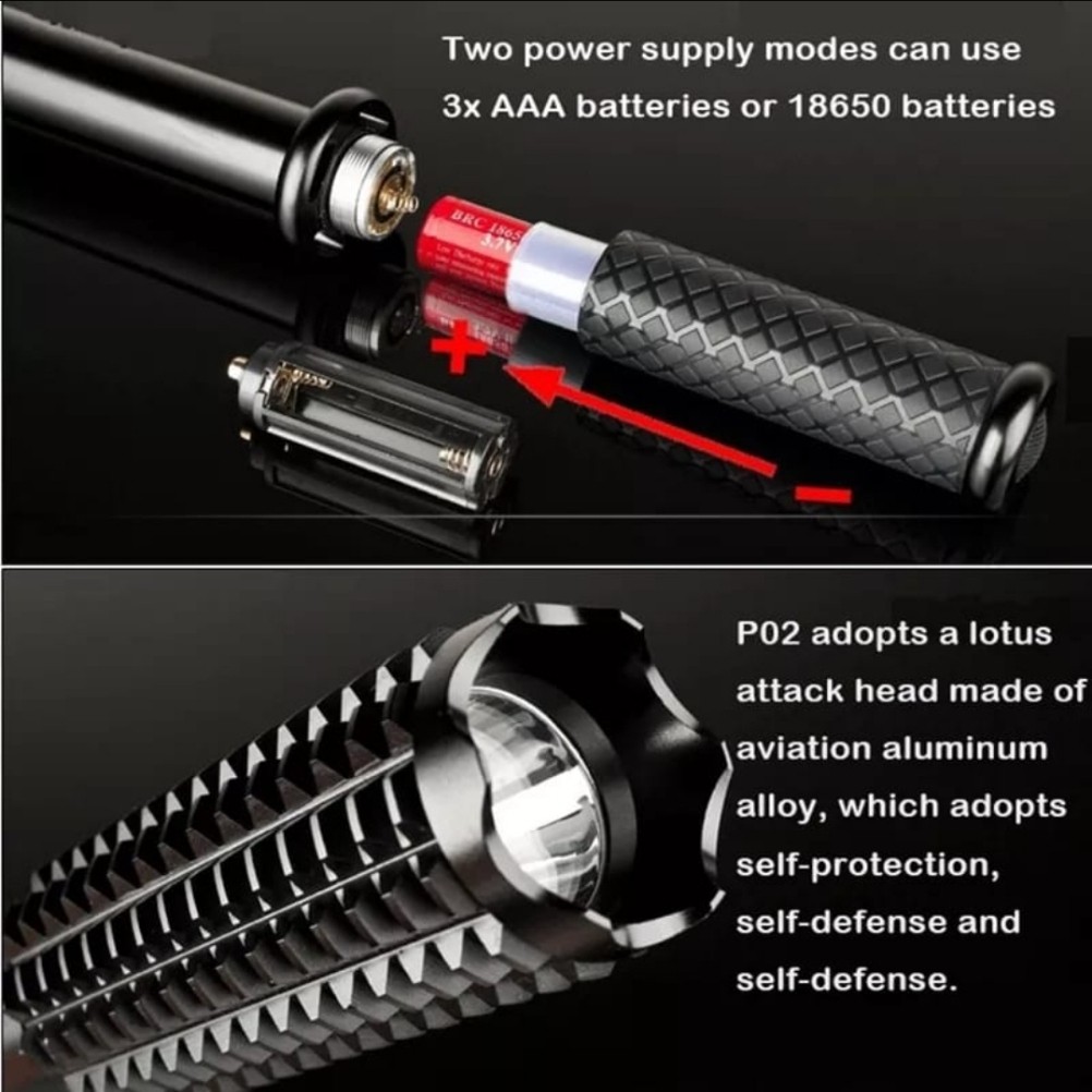 العصى العجيبة من الالمونيوم الخفيف والقوي للدفاع عن النفس و بكشاف LED قوي 200 لومن وببطارية قابله للشحن