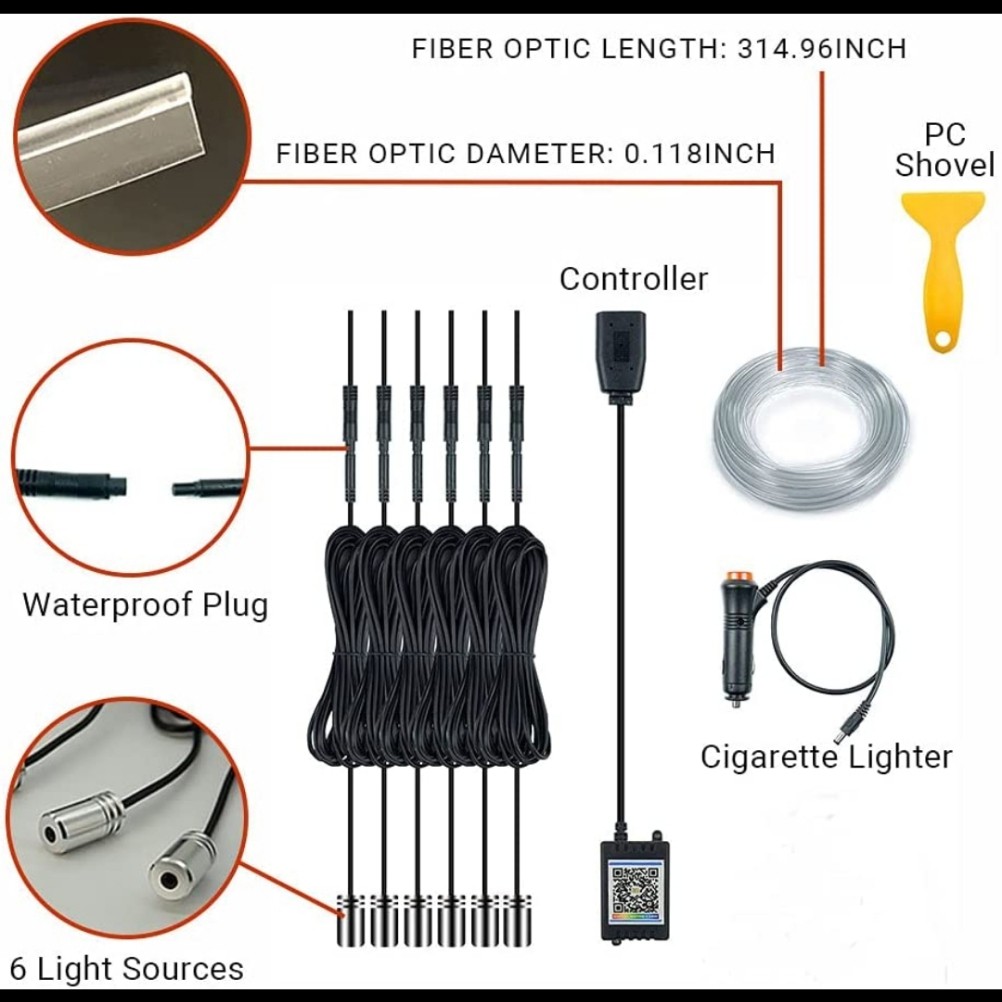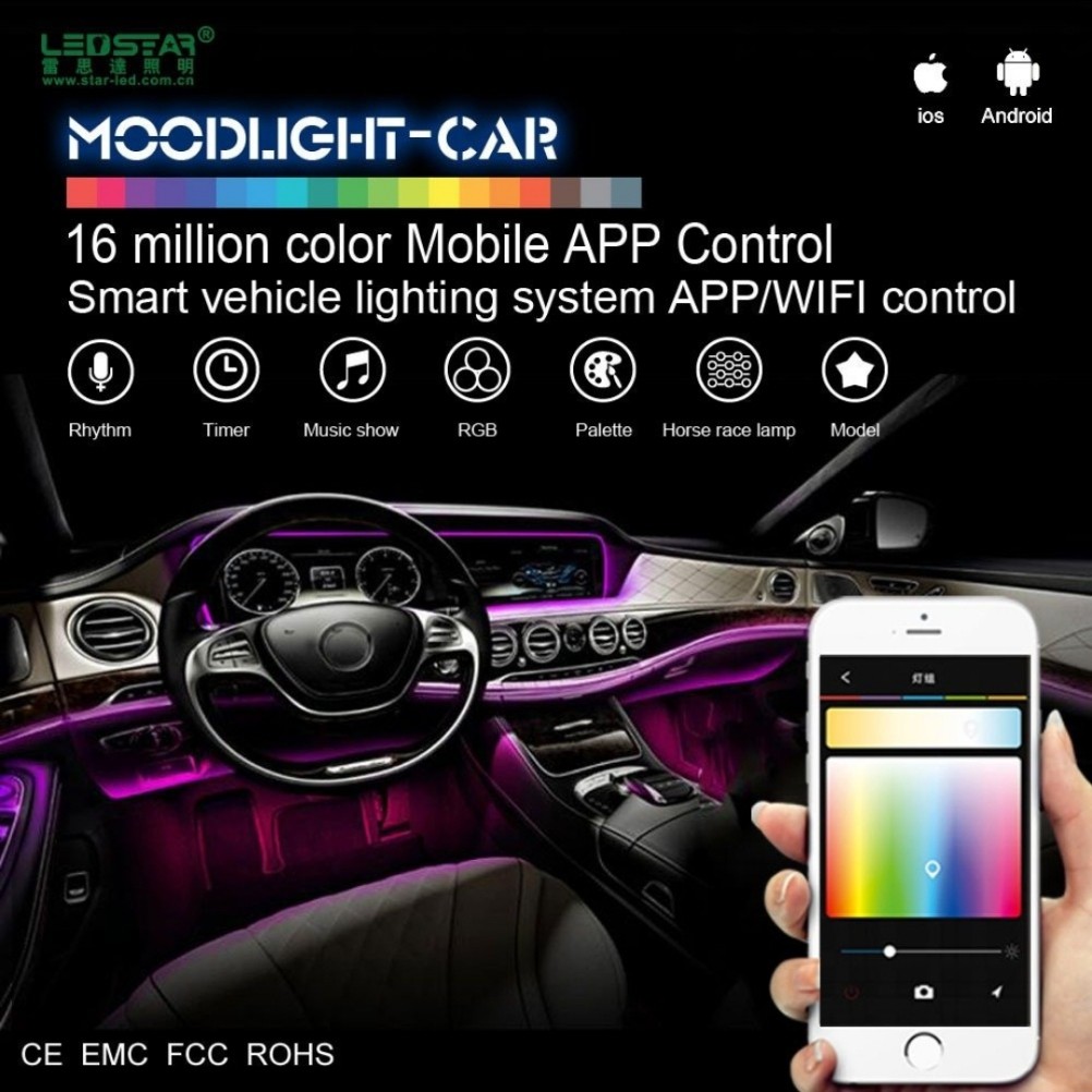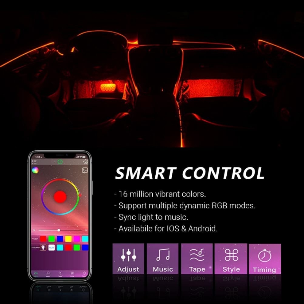 اضائة محيطي للسيارة / 16 مليون لون /تحكم بالجوال / حساس صوت- الألياف الضوئية