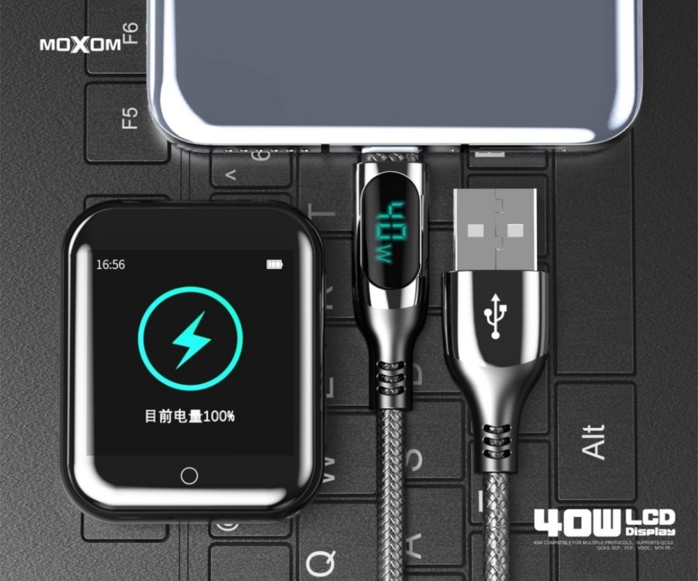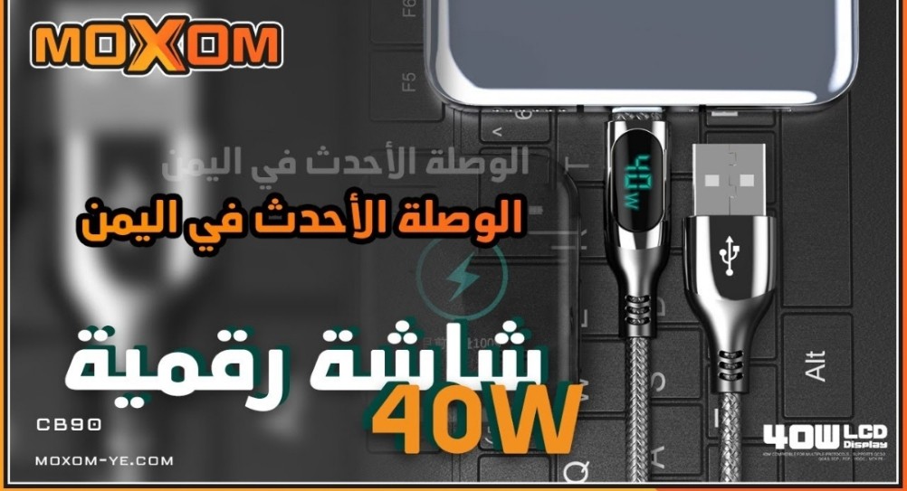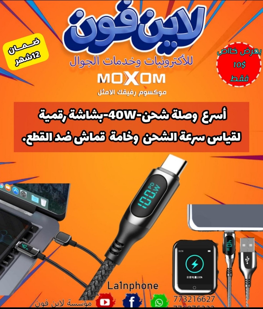 - وصلة شحن / بيانات من موكسوم شحن سريع جدا 40 وات ب شاشة رقمية LCD لمعرفة سرعة الشحن وخامة قماش مقاوم للقطع سوبر فاست .. وضمان ۱۲ شهر