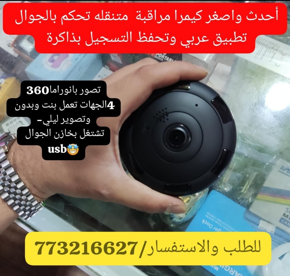 - عرض ع اصغر كيمرا مراقبة تصور 4 اتجاهات تحكم بالجوال بتطبيق عربي 100% وتسجل بكرت ذاكرة بدون جهاز وتشتغل بخازن الجوال ) شاحن سفري وتسجل صوت وصورة وتعمل بنت وبدون نت