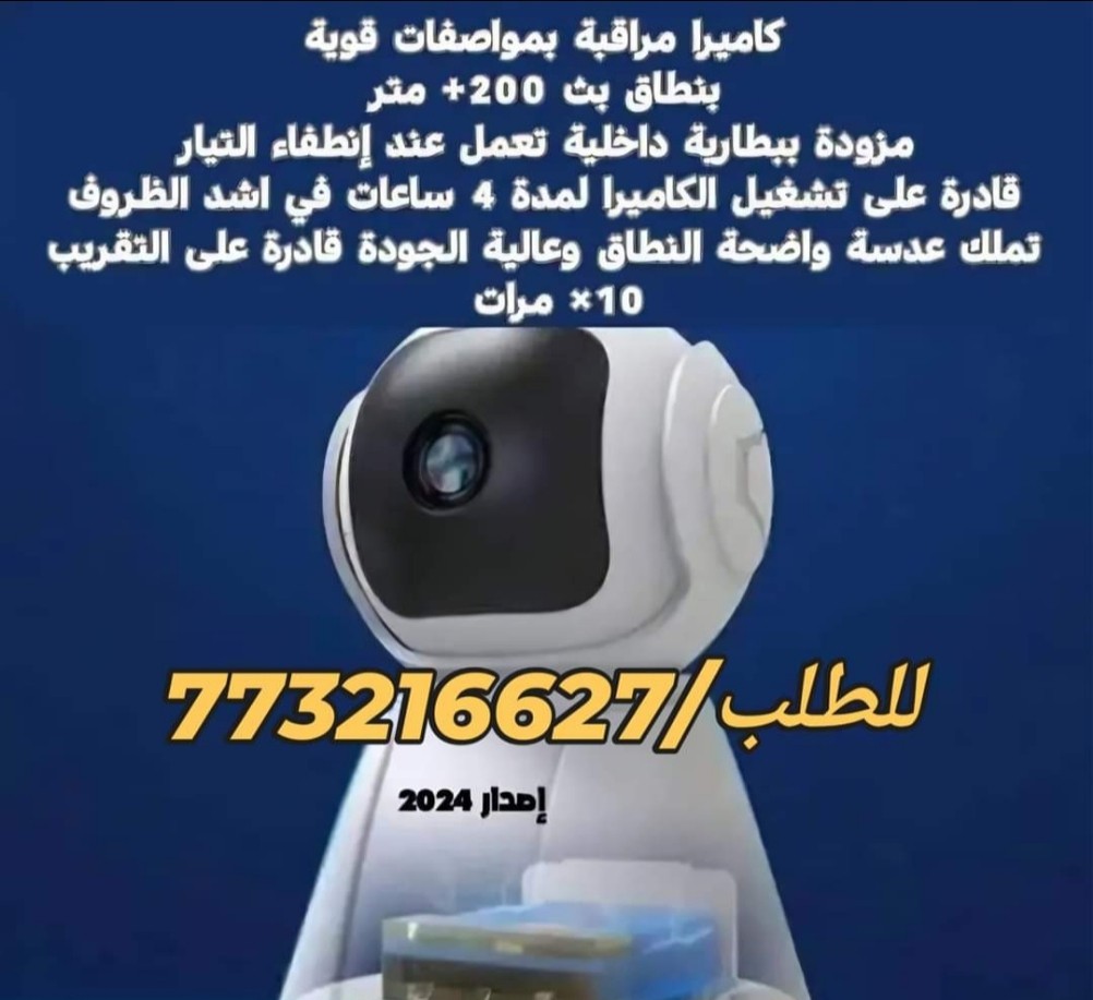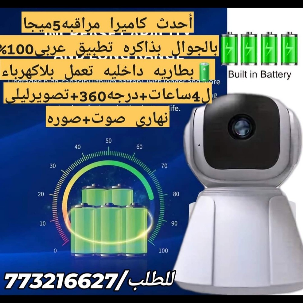كمرا مراقبه لاسلكي 5 ميجا عبر الجوال بتطبيق عربي 100% تخزن الشحن لتعمل عند انقطاع الكهرباء ل 4 ساعات الحفظ الوقت التاريخ لعدم اللخبطه وسهله الاستخدام ب 3 دقائق و بدون مهندس اومبرمج + تصوير ليلي ونهار صوت وصورة