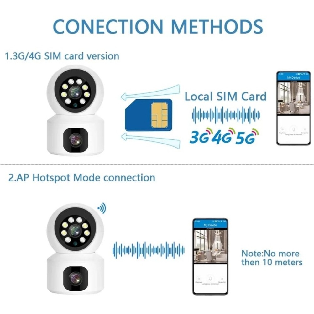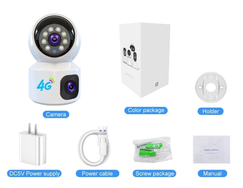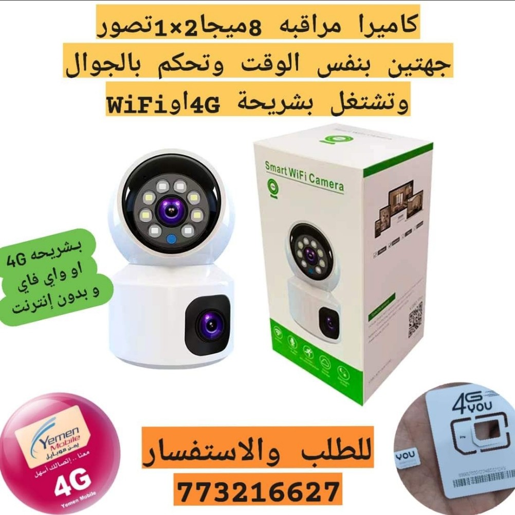 كاميرا مراقبة 8 ميجا 2K عدستين - 1 ثابته 2 متحركه وتشتغل بشريحة 4G او واي فاي وتحكم بالجوال.
