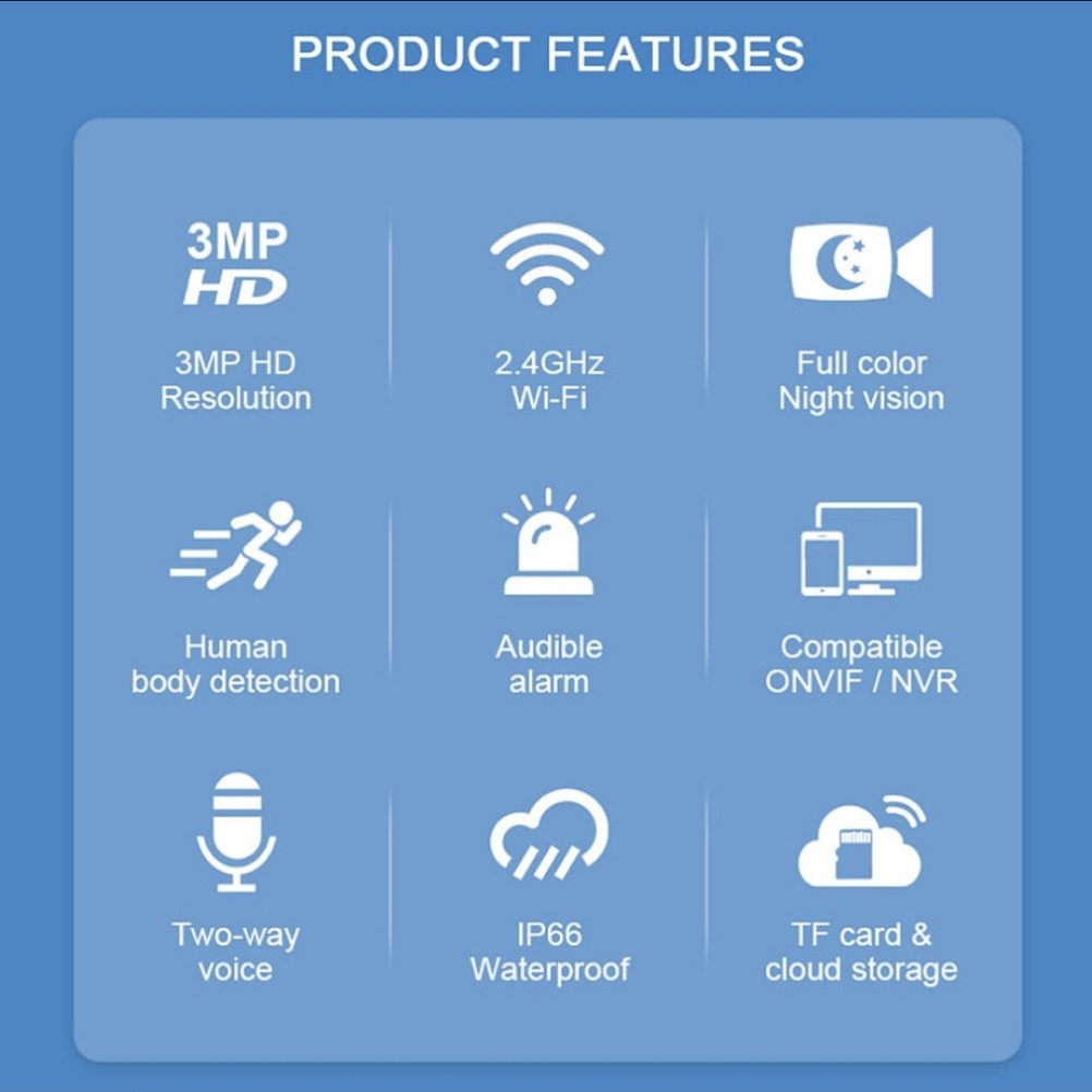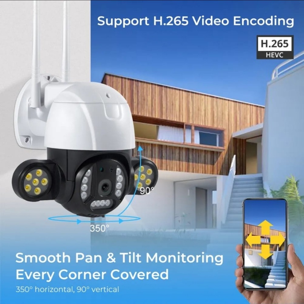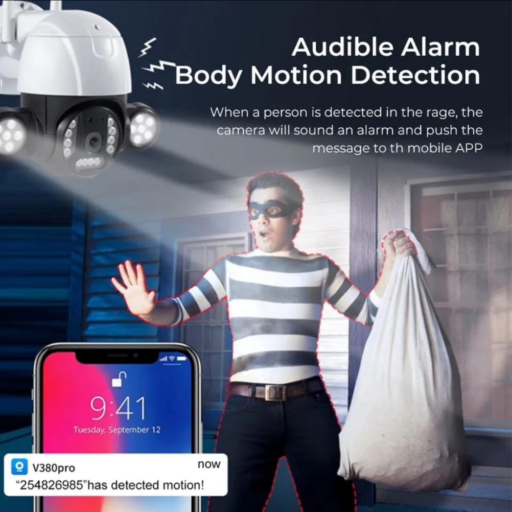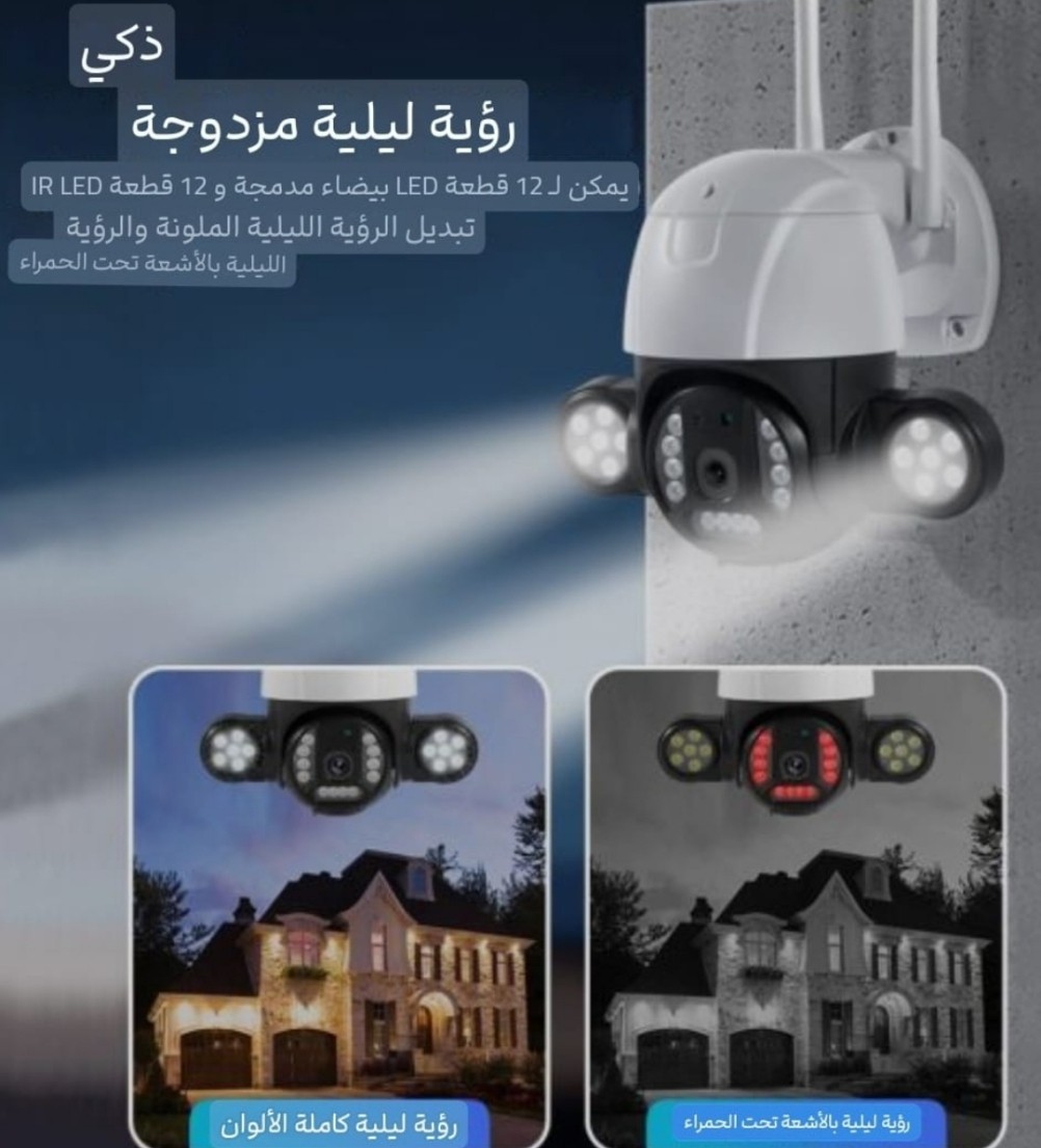 أحدث كاميرا خارجية متحركة بجميع الاتجاهات وبكشاف وانذار حساس للحركة لحماية ممتلكاتك واخافة السرق قبل الحادثة و تعمل على الوافاي او حتى بدونه وبدقة تصوير عالية 5 ميجا فل إتش دي 1080 وخاصية التقريب زووم بصري 4x ورؤية ليليه لمسافة 50 متر