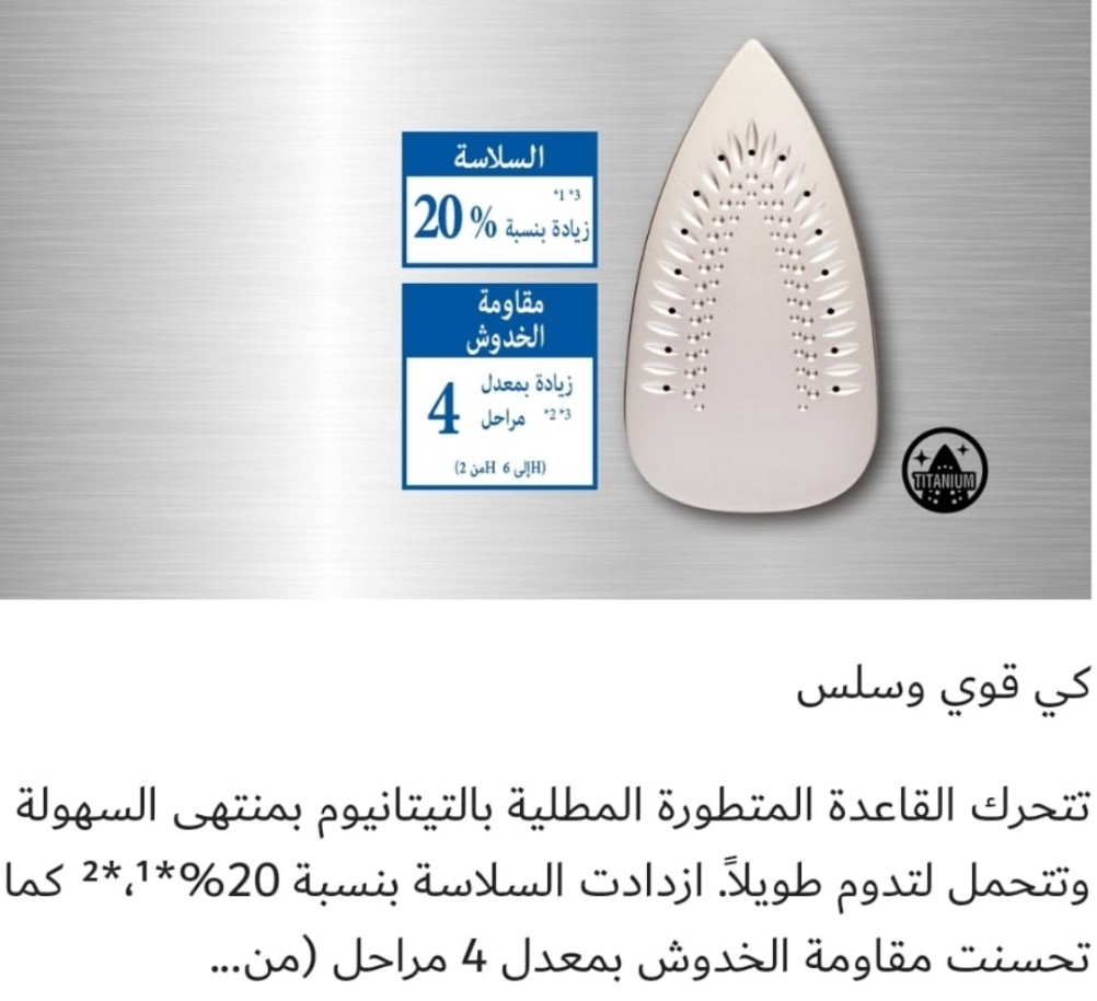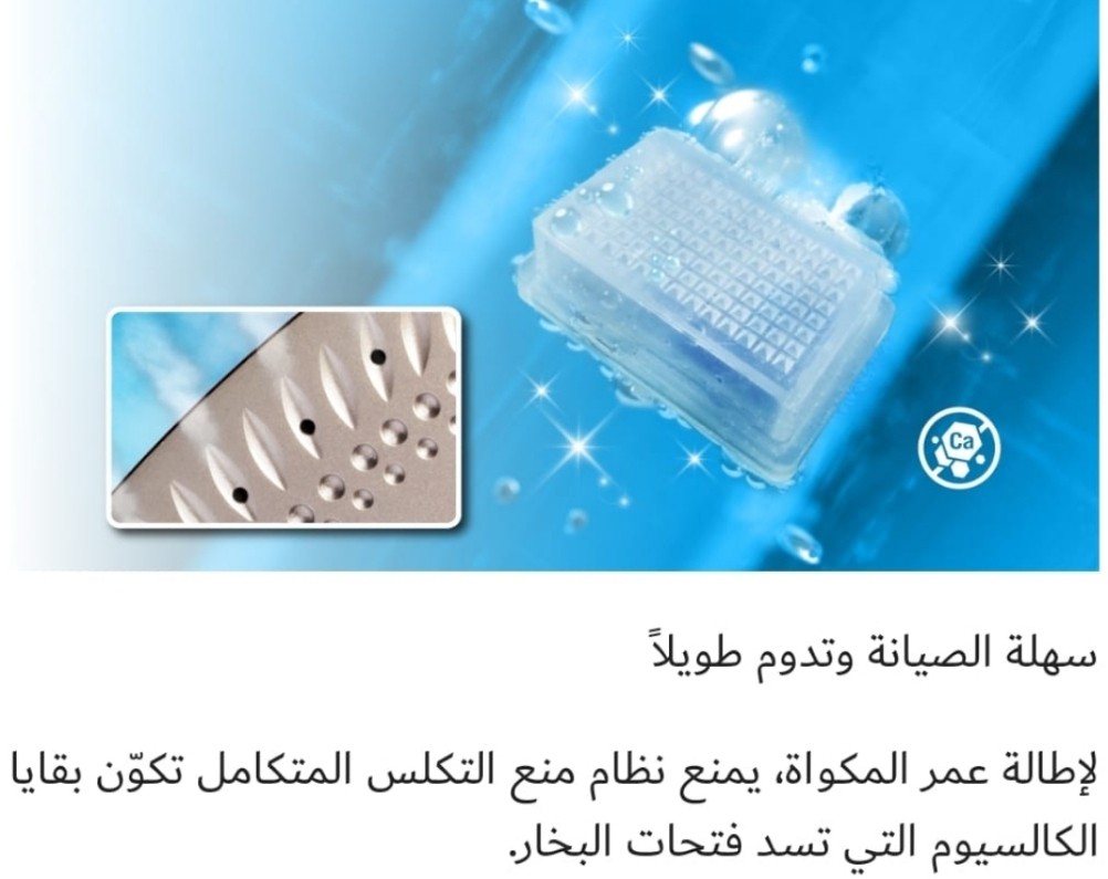 3- سهلة الصيانة وتدوم طويلاً بنظام منع التكلس المتكامل يمنع تكون بقايا الكالسيوم التي تسد فتحات البخار، لإطالة عمر المكواة.