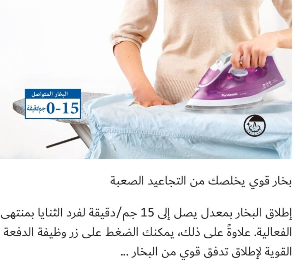 الكي أصبح ولا أسهل مع كاوية باناسونيك ، بمميزاتها الرهيبة وادئها القوي لجعل الملابس ناعمة وأنيقة.