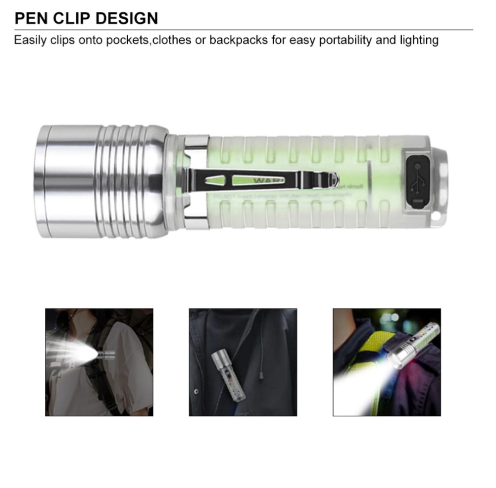 اقوی کشاف بحجم صغير وضوء قووووي جدااا ل 400-250 متر بعدة إضائات مختلفه مع وضعيه التقريب والتبعيد و إضاءة بنفسجي لكشف العملة المزوره وايضا سفتي احمر وازرق ومغناطيس بالخلف لتعليقه باي سطح حديدي وايضا يمكن شحنه بسرعه بوصله USB نوع tayp-c