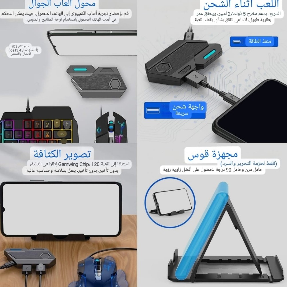 قطعة إستخدام الجوال مع ماوس وكيبورد قيمنق احترافي بلوتوث أحدث اصدار بستاند للجوال