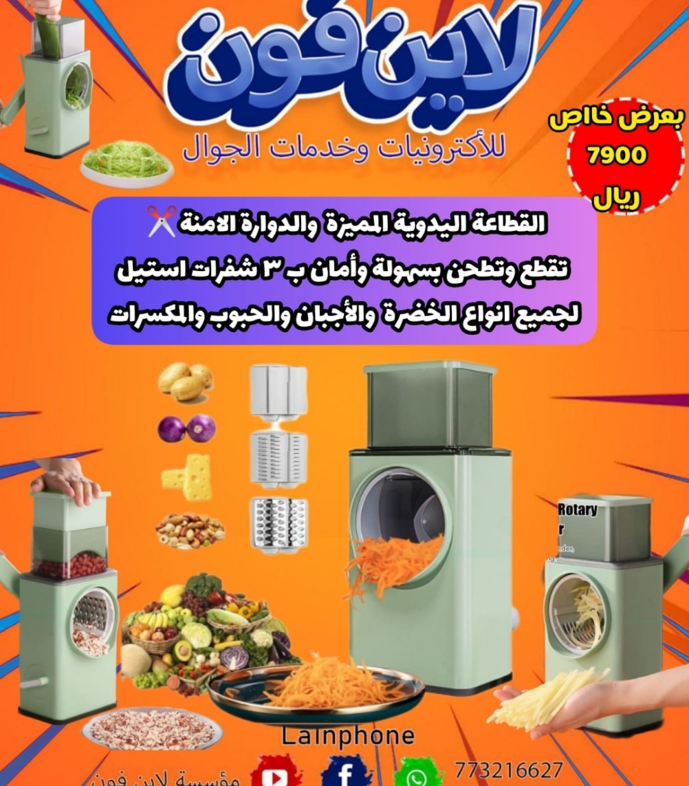 قطاعة الخضار اليدوي المميزة - اصدار مميز امنة ليديك ب ٣ شفرات تقطيع وطحن جميع ما تتمني