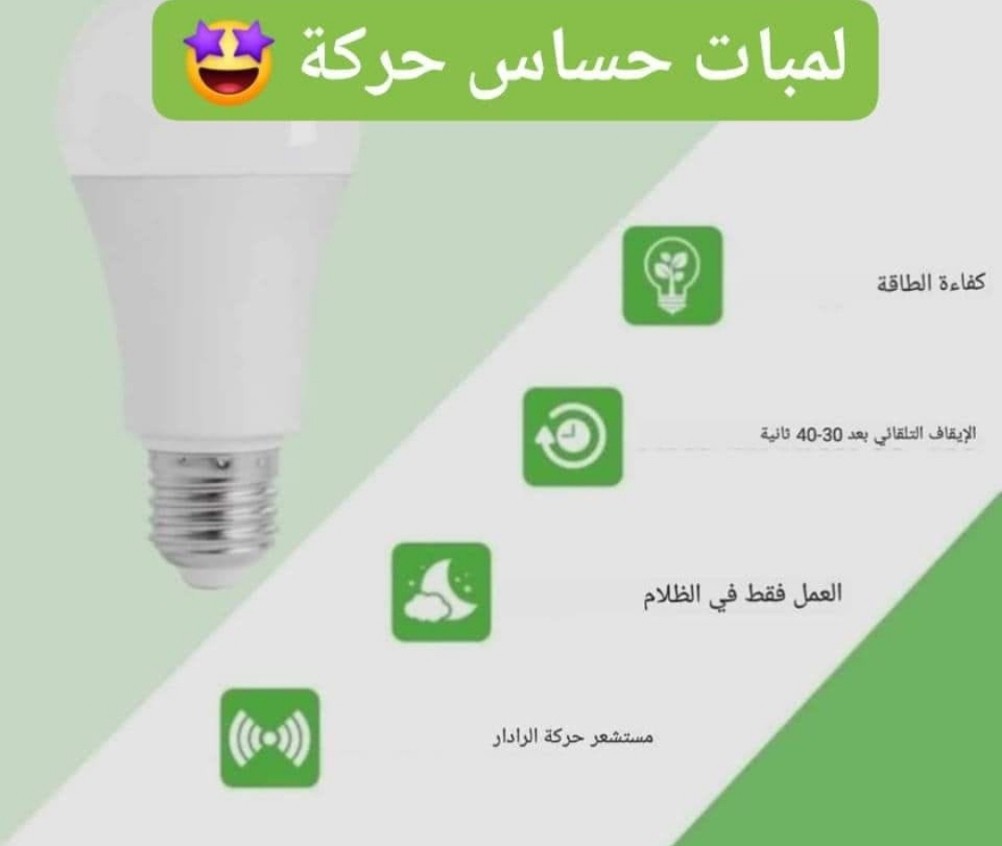 لمبه حساس حركه وضوء بالحركه والصوت والضوء - 360-220V- اقتصاديه لتوفير الكهرباء.