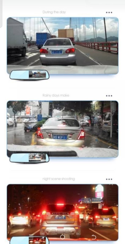 9- المرايه رفيعه ولا تظهر انها مركبه على مرأه السياره بحيث تكون مرأه عاديه جدااا و عند تشغيل الكاميرا تتحول الى شاشه كما هو موضح في الصور و الفيديو في الاسفل.
