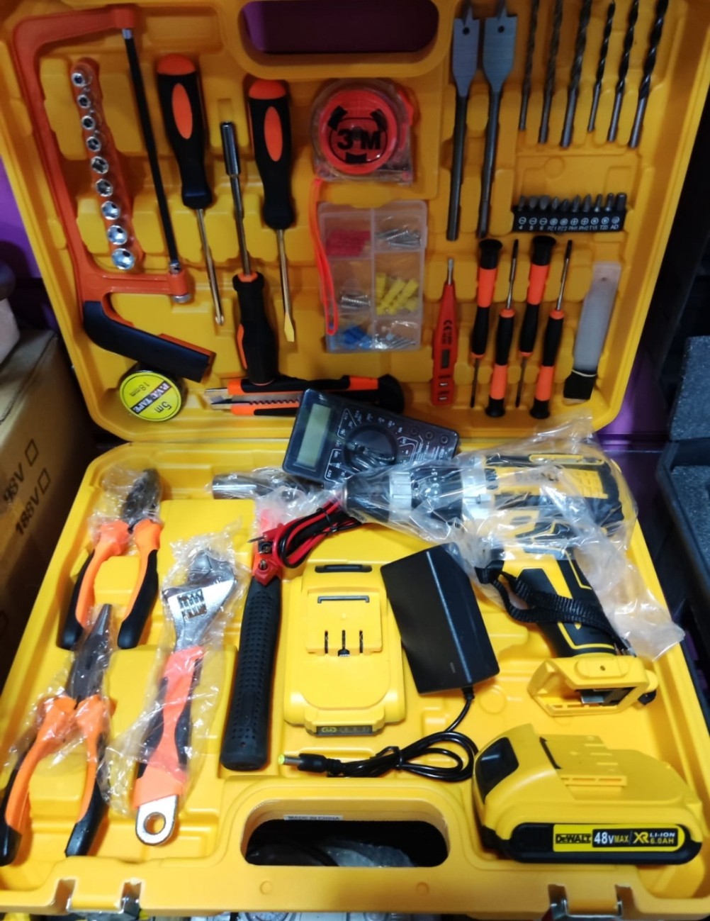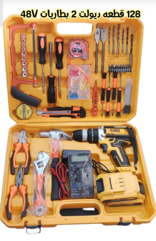 أحمل جميع عدتك اليدويه والكهربائية عرض خاااص وانسى هم تعب الدوار مع شنطة عدة الصيانة الشاملة 128 قطعة مع دريل مطرقة ومفك لاسلكي يعمل بالشحن ومع ببطارييتن 48 فولت وحقيبة 128 قطعة من متر الى منشار الا وكشاف يد وجميع المفكات وشنطة أنيقة للحفاظ على العدة والعديد من القطع بالصورة عكس الي بالسوق الي تجي بدون جهاز الفحص الكهرباء والعديد من القطع