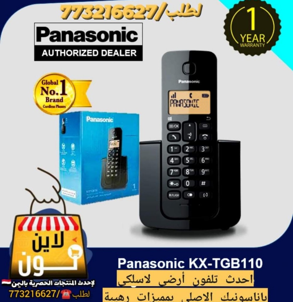 هاتف رقمي لاسلكي من شركة Panasonic العالمية الاصلي 100 للخطوط الأرضية بسماعة ب مايك وقابله للشحن بالقاعدة المخصصة
