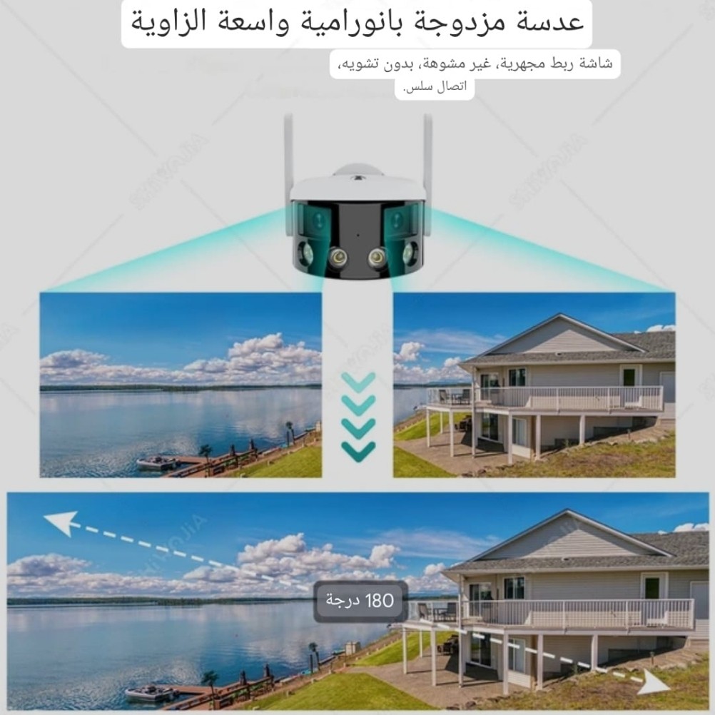 كاميرا ب 2 عدسات تصور 180 درجه بدون تحريك - دقه 8 ميجا 2K - لا سلكي بذاكره تحكم بالجوال