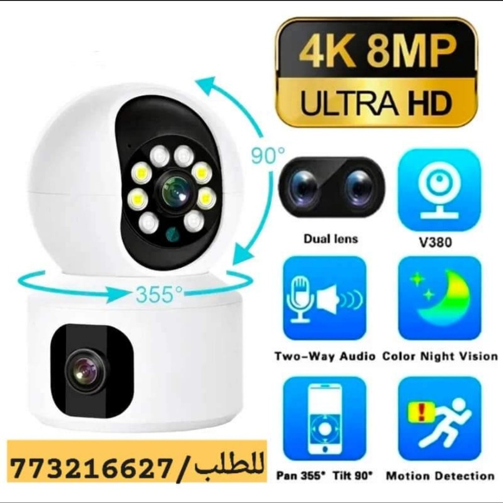 كاميرا مراقبة 8 ميجا 2K عدستين - 1 ثابته 2 متحركه وتشتغل بشريحة 4G او واي فاي وتحكم بالجوال.