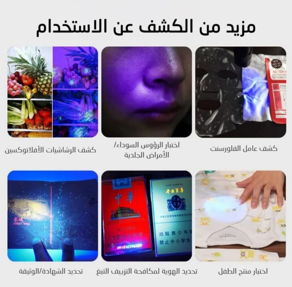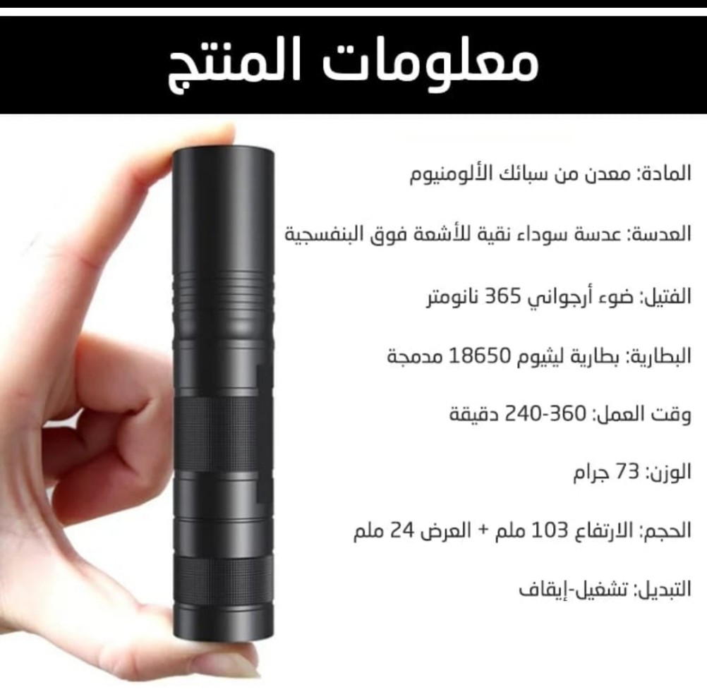 احدث كشاف الاشعه تحت البنفسجية الاصغر بالعالم لكشف التزوير والعقارب والبصمات وتهريب الزيوت والفطريات والاحجار الكريمه والمزيد من الاستخدامات ويمكن شحنه باي منفذ USB
