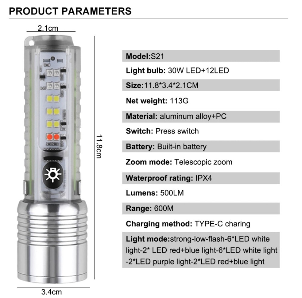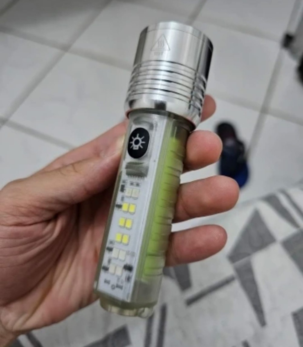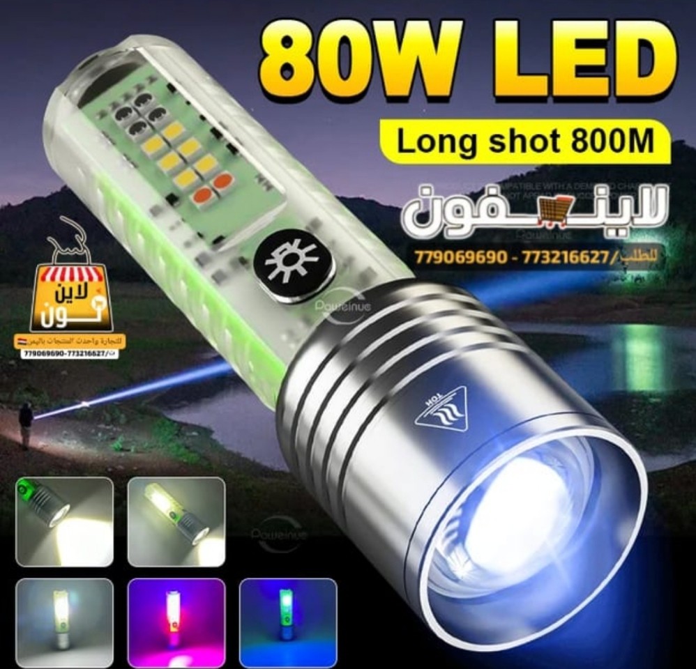 اقوی کشاف بحجم صغير وضوء قووووي جدااا ل 400-250 متر بعدة إضائات مختلفه مع وضعيه التقريب والتبعيد و إضاءة بنفسجي لكشف العملة المزوره وايضا سفتي احمر وازرق ومغناطيس بالخلف لتعليقه باي سطح حديدي وايضا يمكن شحنه بسرعه بوصله USB نوع tayp-c